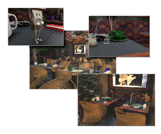 was a persanl project that I completed. A photo realistic rendering of a casual coffee shop using composited cigarette smoke. Also, an animated character "tea bag" was designed and animated in 3d.