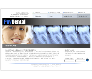 A full html site using form mail and java script. Pay Dental wanted a simple site to push the sales of thier dynamic dental software solutions.